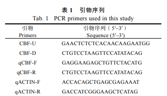 CBF基因的克隆與生物信息學(xué)分析 將白菜(Brassica rapa)CBF 基因序列(登錄號(hào): KJ013591.1)搜索茄子基因組 DNA 序列,用 softberry 網(wǎng)站在線預(yù)測(cè)基因軟件 FGENESH 對(duì)這 段 DNA 序列進(jìn)行基因預(yù)測(cè),找到 CBF 基因的編碼區(qū)。參考茄子 EST 序列,通過(guò)與小白菜(Brassica campestris)、番茄(Solanum lycopersicum)、馬 鈴薯(Solanum tuberosum)CBF 基因序列比對(duì)確 定茄子 CBF 的開(kāi)放型閱讀框區(qū)域(Open Reading Frame, ORF),并在此序列基礎(chǔ)上設(shè)計(jì) ORF 上下 游引物和熒光定量引物(表 1)。