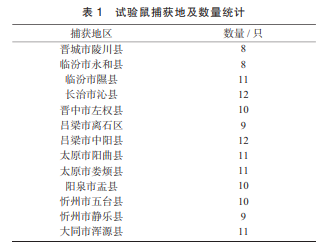 在野外捕獲活體長(zhǎng)尾倉(cāng)鼠后,取 其尾尖為 DNA 提取材料。捕獲地及數(shù)量見(jiàn)表 1。