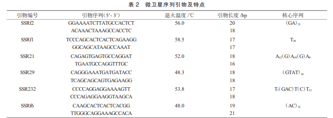 試驗(yàn)所采用的引物借鑒 了與長(zhǎng)尾倉(cāng)鼠同屬的黑線(xiàn)倉(cāng)鼠 SSR 位點(diǎn)引物, 并由生工生物工程股份有限公司合成。具體序列以 及特點(diǎn)列于表 2。