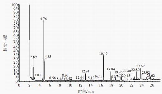圖1酵母CK-03發酵樣品揮發性成分的GC-MS總離子流圖